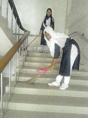 YURIKOエンゼルスクールでは、暑い季節も欠かさず子ども達みんなで学校をきれいに掃除しています。日本では当たり前に子ども達が行っている掃除ですが、バングラデシュでは珍しく、たいていの学校では掃除専門の人を雇って掃除しています。